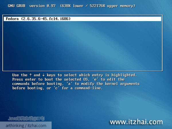 一、开机或者重启系统,在开机的时候按住上下两个方向键,直到出现了启动画面: [caption id=“attachment_300” align=“aligncenter” width=“300” caption=“Fedora忘记密码的解决办法”]