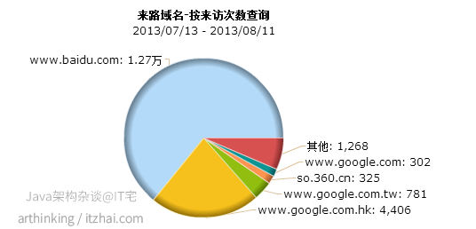 我们网站的流量主要是从哪几个搜索引擎获取的呢,这里是IT宅的的一份统计数据: