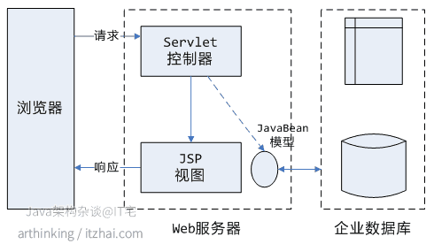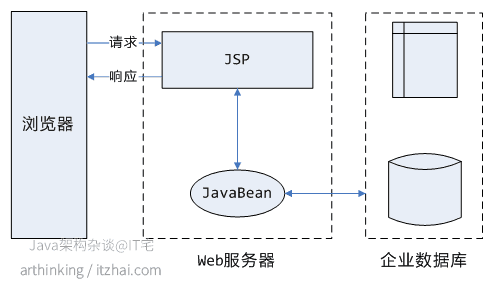 最初的Java Web开发,都采用了Model 1模型进行开发,主要以JSP+JavaBean进行开发。
