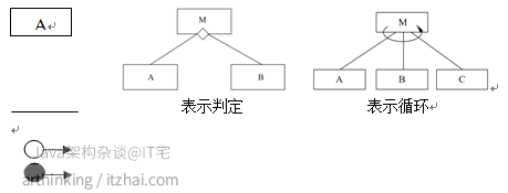 尾部带实心圆的箭头,表示按方向传递的控制信息;