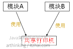 (5) 外部耦合—例如,如下图,模块A、B均需使用共享打印机