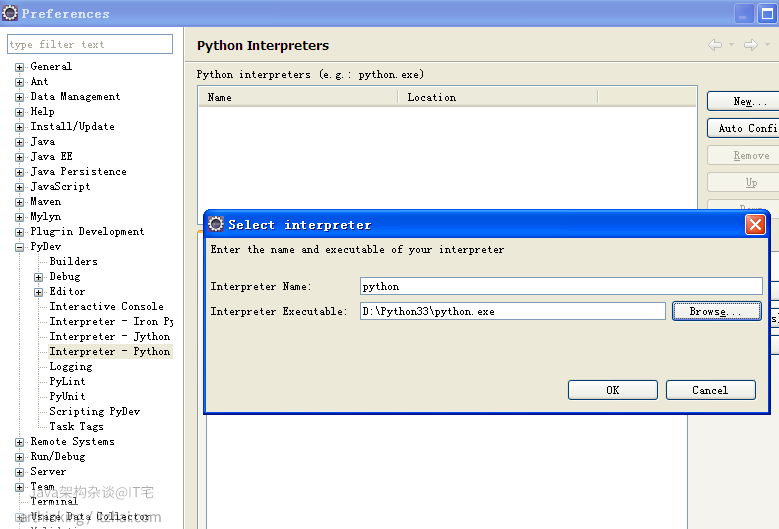 重启Eclipse,设置Eclipse的Pydev的插件的环境